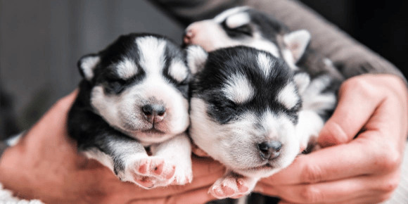 Puppies born by caesarean, only hours old